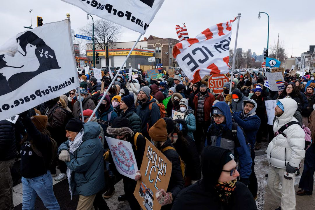 Trump accused Minnesota leaders of failing to maintain order and suggested that federal intervention could be imminent if demonstrations continue. He framed the protests as organized and unlawful, portraying federal officers as under siege while carrying out immigration enforcement operations ordered by his administration.